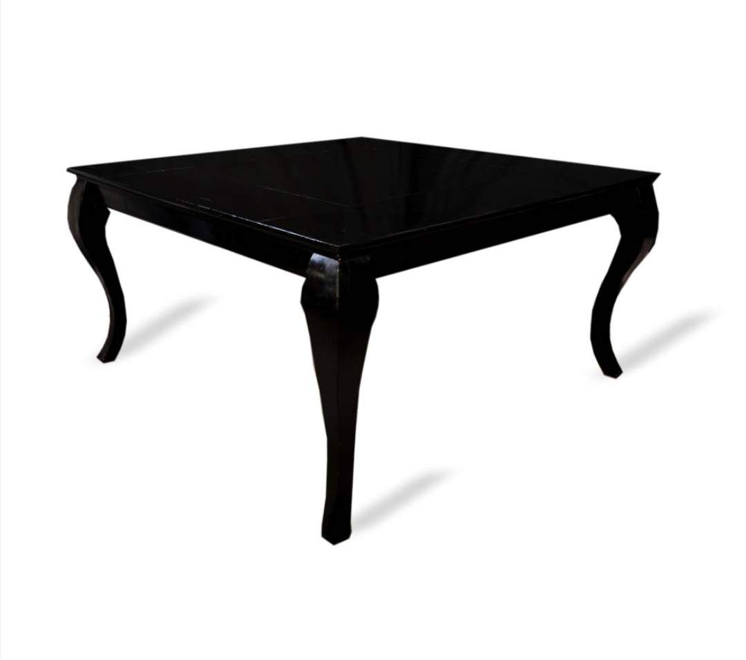 Mesa cuadrada de madera negra patas curvas